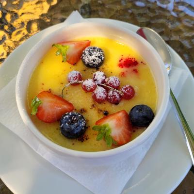 Pietų metu restorane apsilankiusieji svečiai mėgaujasi gausiais ir gardžiais pietumis, o vakarais yra kviečiami paragauti moderniai patiekiamų europietiškos virtuvės patiekalų bei gėrimų.